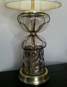 Vintage Lamp Mcm Hollywood Regency Bubble Glass Table Lamp Italy