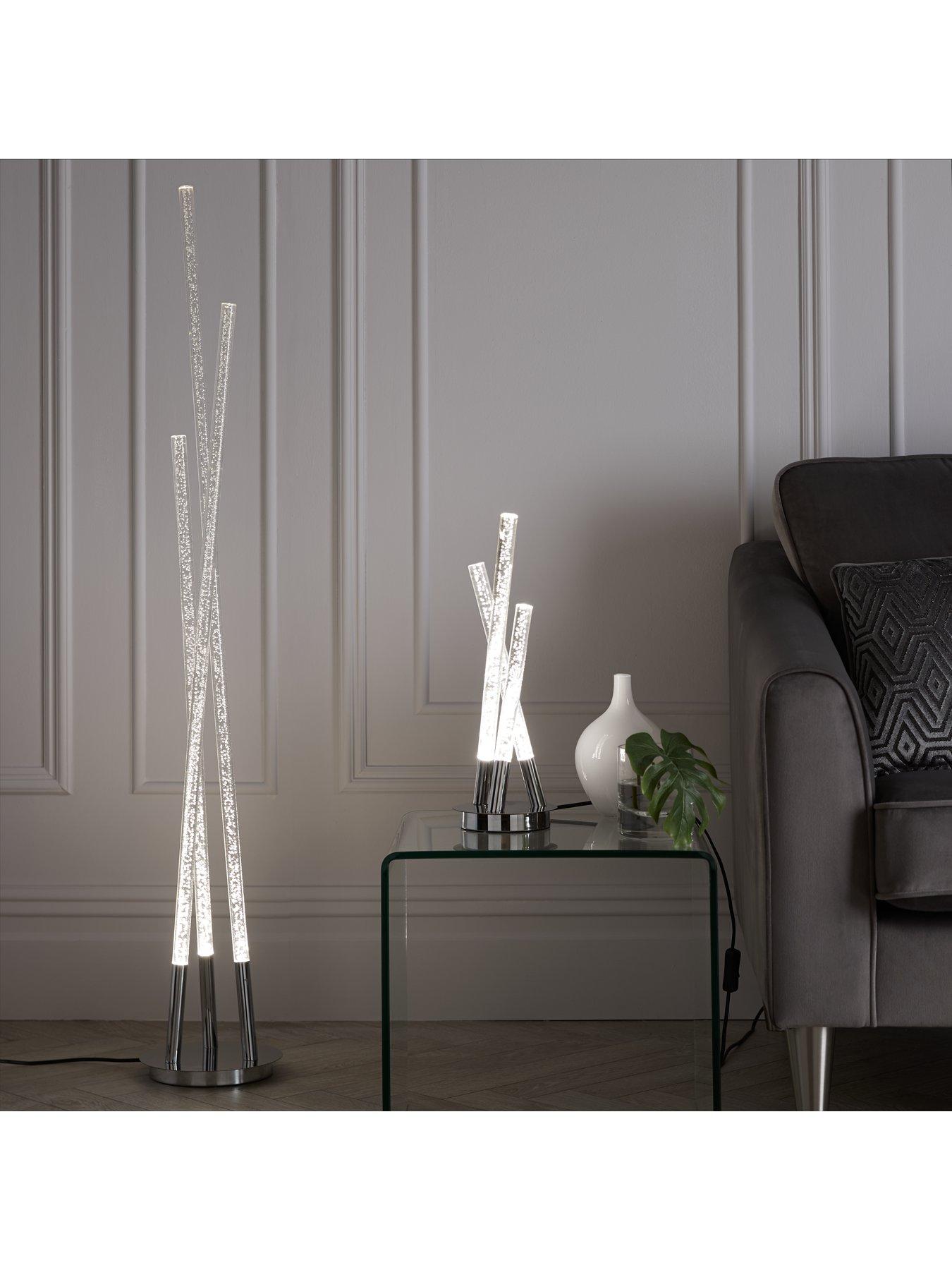 Led 1 Light Table Lamp Satin Chrome Acrylic With Bubbles E27