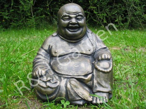 Large Laughing Buddha Garden Ornament Bronze Effect Free P P