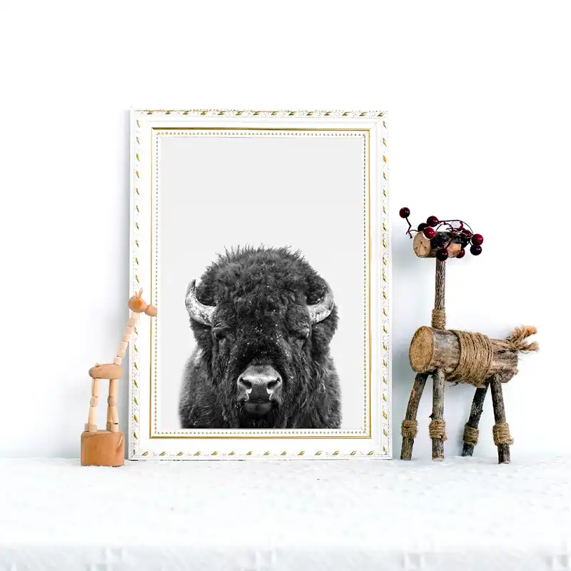 Bison Print Black White Animal Photo Poster Nursery Decor Highland