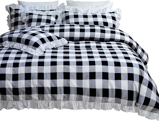Amazon Com Softta Vintage Ruffle Buffalo Plaid Bedding Set 3 Pcs