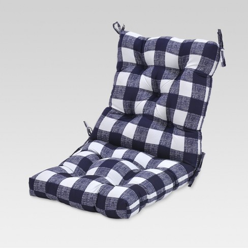 Outdoor Tufted Chair Cushion Buffalo Plaid Blue Threshold