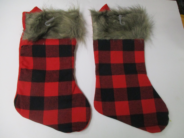 Red Black Christmas Stocking Buffalo Check Plaid Faux Fur Cuff