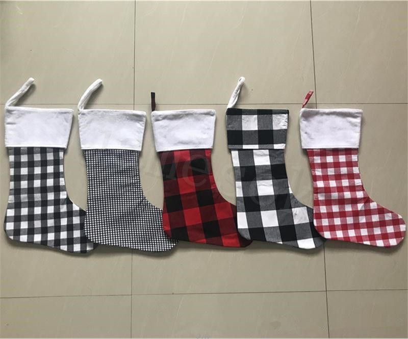 Christmas Stockings In Black White Grey Red Buffalo Check Etsy