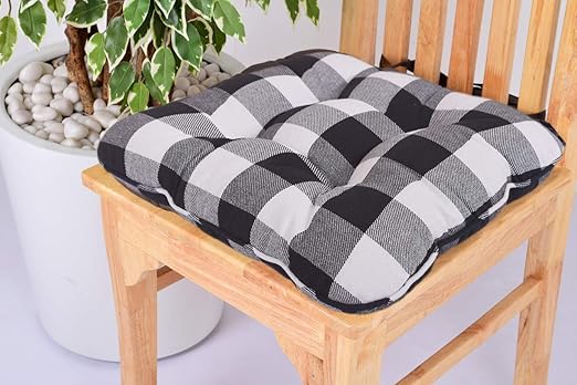 Buffalo Check Black White Dining Chair Pad Latex Foam Fill