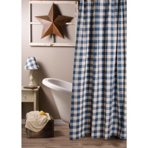 New Primitive Country Farmhouse Blue Buffalo Check Fabric Shower Curtain Ebay