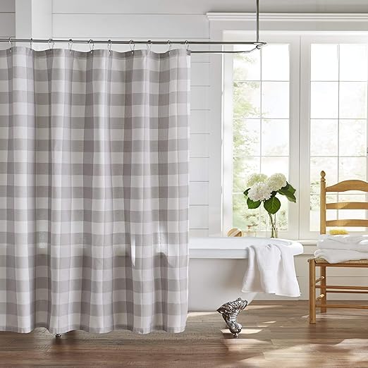 Amazon Com Elrene Home Fashions Farmhouse Living Buffalo Check Fabric Shower Curtain 72 X 72 Gray White Home Kitchen