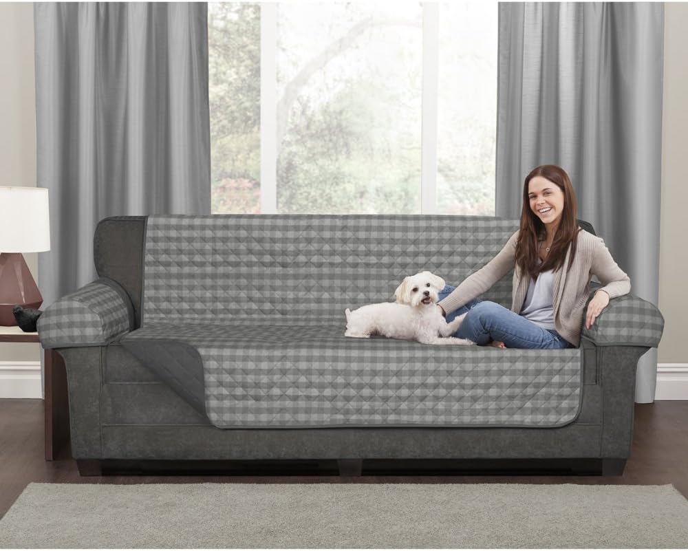 Amazon Com Maytex Buffalo 2way Loveseat Cover Grey Check Home