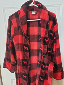 Victoria S Secret Pink Robe Cozy Plush Black Red Buffalo Check