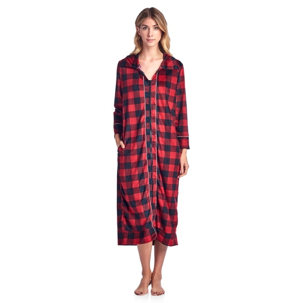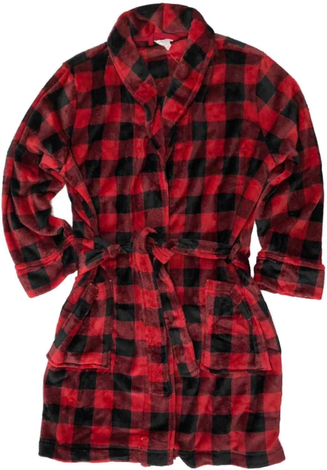 Womens Plush Red Black Buffalo Plaid Bathrobe House Coat Bath
