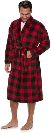 Croft And Barrow Mens Red Buffalo Check Plush Bathrobe Robe Sm