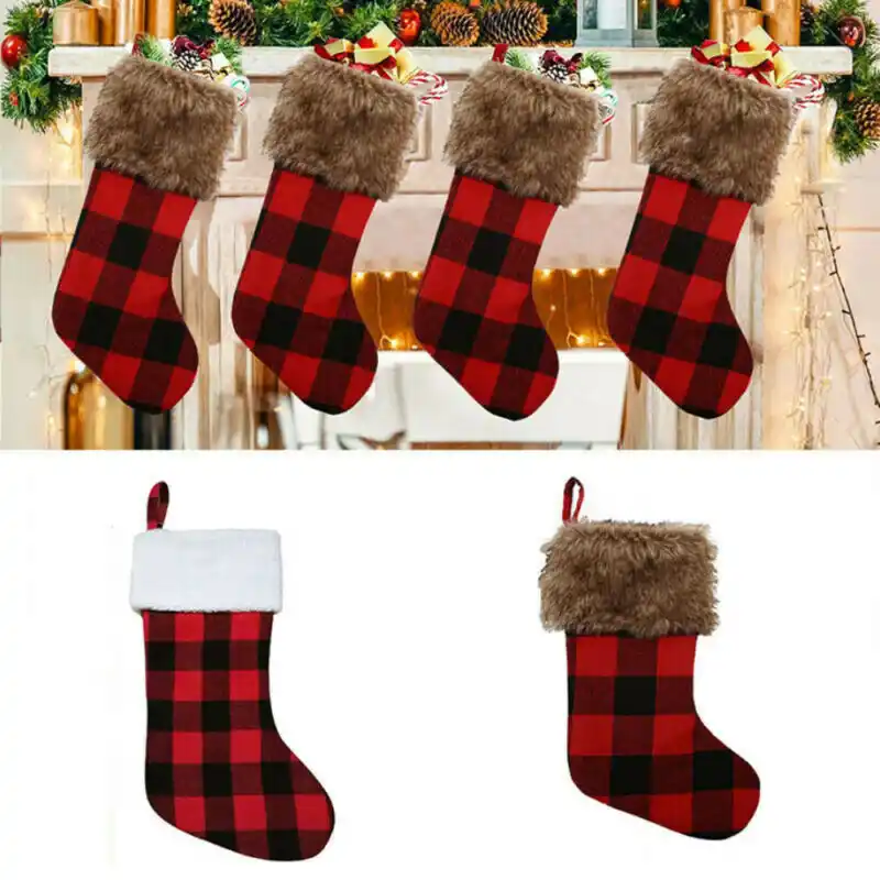Check Buffalo Plaid Christmas Stocking Gift Bag Holder Xmas Tree
