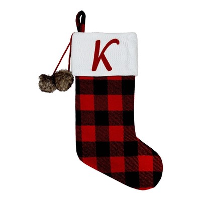 Letter K Buffalo Plaid Monogram Stocking Checkered Red Black Xmas