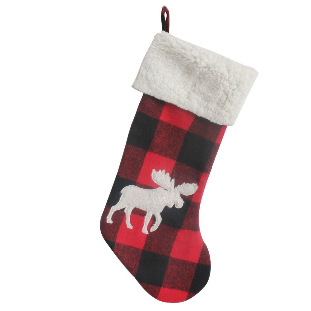 Stocking Decoration Buffalo Check With 3d Applique Short Plush