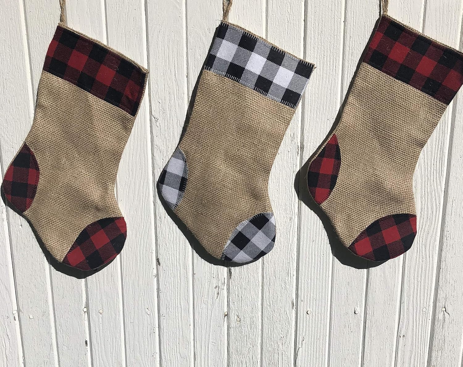 Amazon Com Buffalo Plaid Burlap Christmas Stocking Red Black