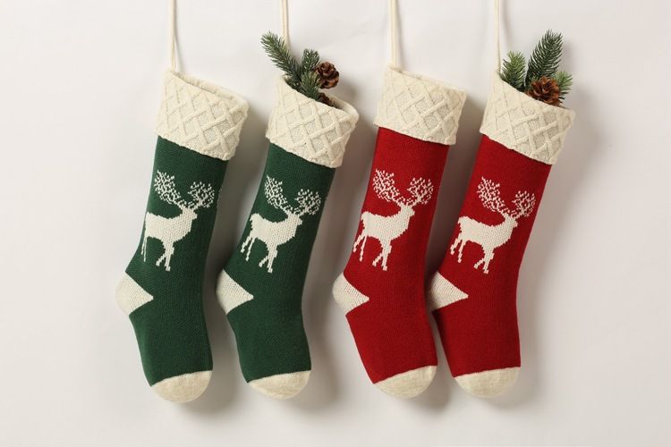 Wholesale Knitted Red Deer Christmas Stockings Buffalo Check