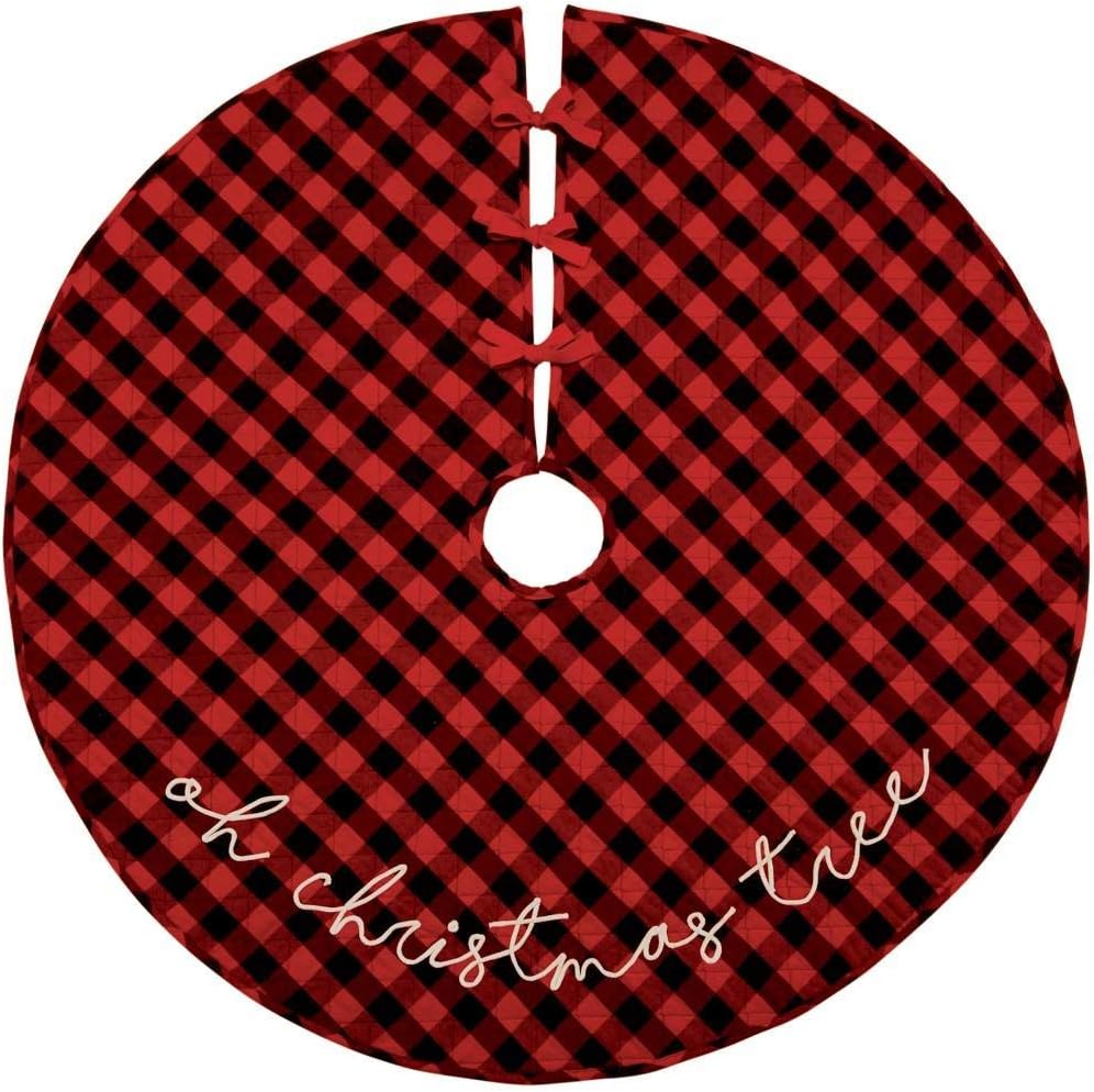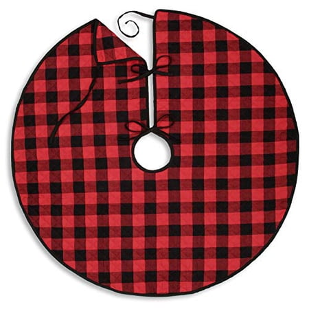 48 Inch Christmas Tree Skirt With Red And Black Buffalo Check Tree