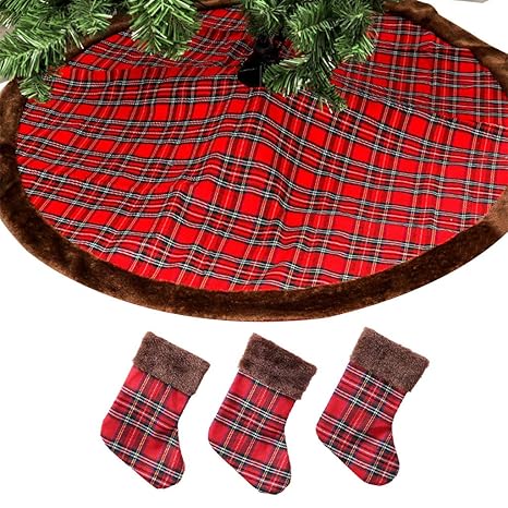 Edldecco 36 Inch Plaid Christmas Tree Skirt With Red And Black