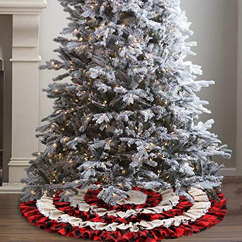 Keriqi 48 Inch Buffalo Plaid Christmas Tree Skirt Burlap Red And