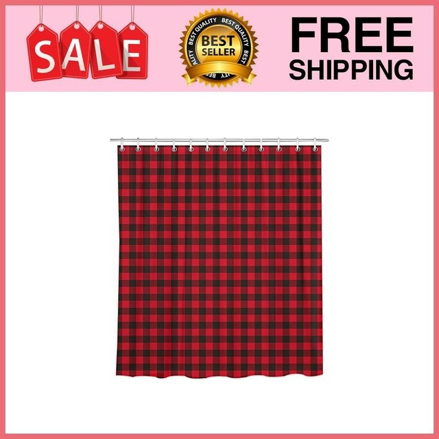 Shower Curtain Buffalo Check Red Black Plaid Rustic Bathroom Decor
