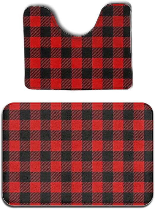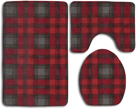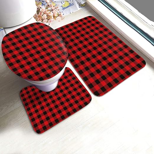 Amazon Com Red And Black Buffalo Plaid Bath Mat 3 Piece Bathroom