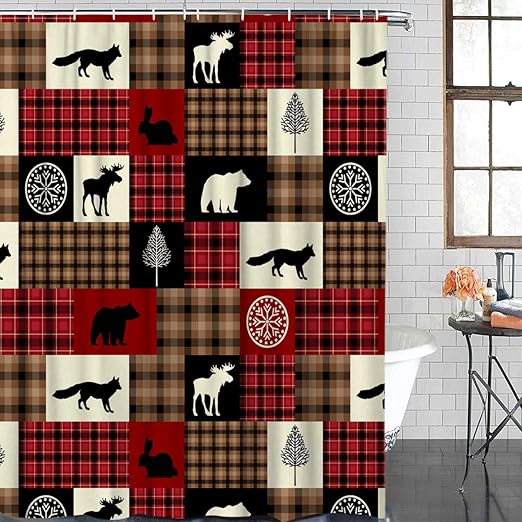 Amazon Com Jawo Plaid Shower Curtain Wildlife Animal Moose With