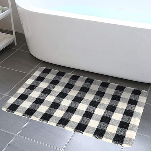 Gracie Oaks Onecre Buffalo Check Rectangle Non Slip Plaid Bath Rug