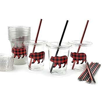 Buffalo Plaid Bear Baby Shower Lumberjack Birthday Party Cups 12