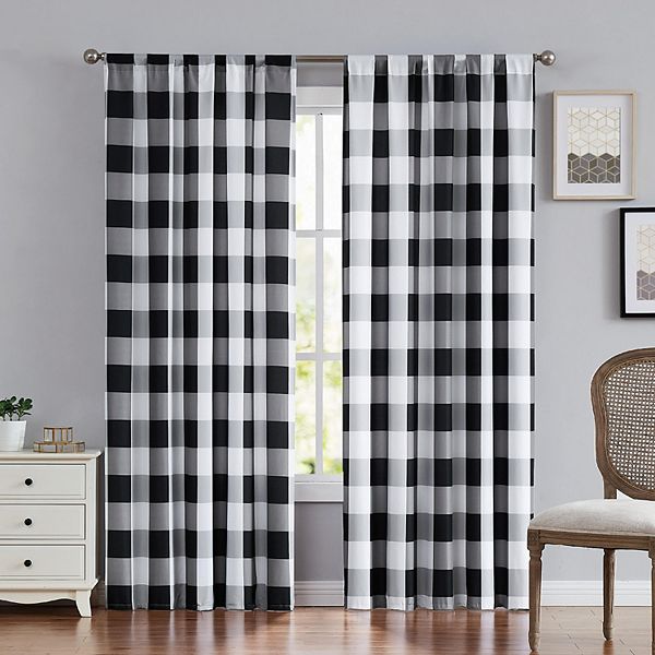 Truly Soft Everyday Buffalo Plaid Black Window Panel Set