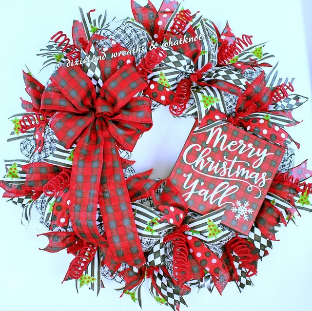 Merry Christmas Ya Ll Wreath Buffalo Plaid Christmas Etsy