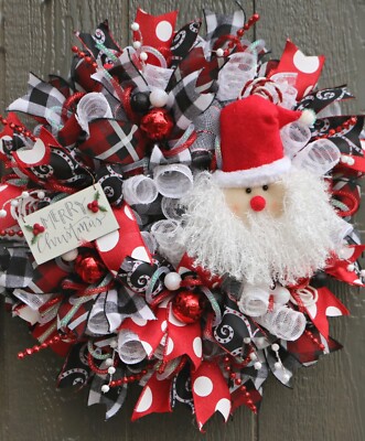 Christmas Santa Door Wreath Buffalo Plaid Christmas Wreath Ebay