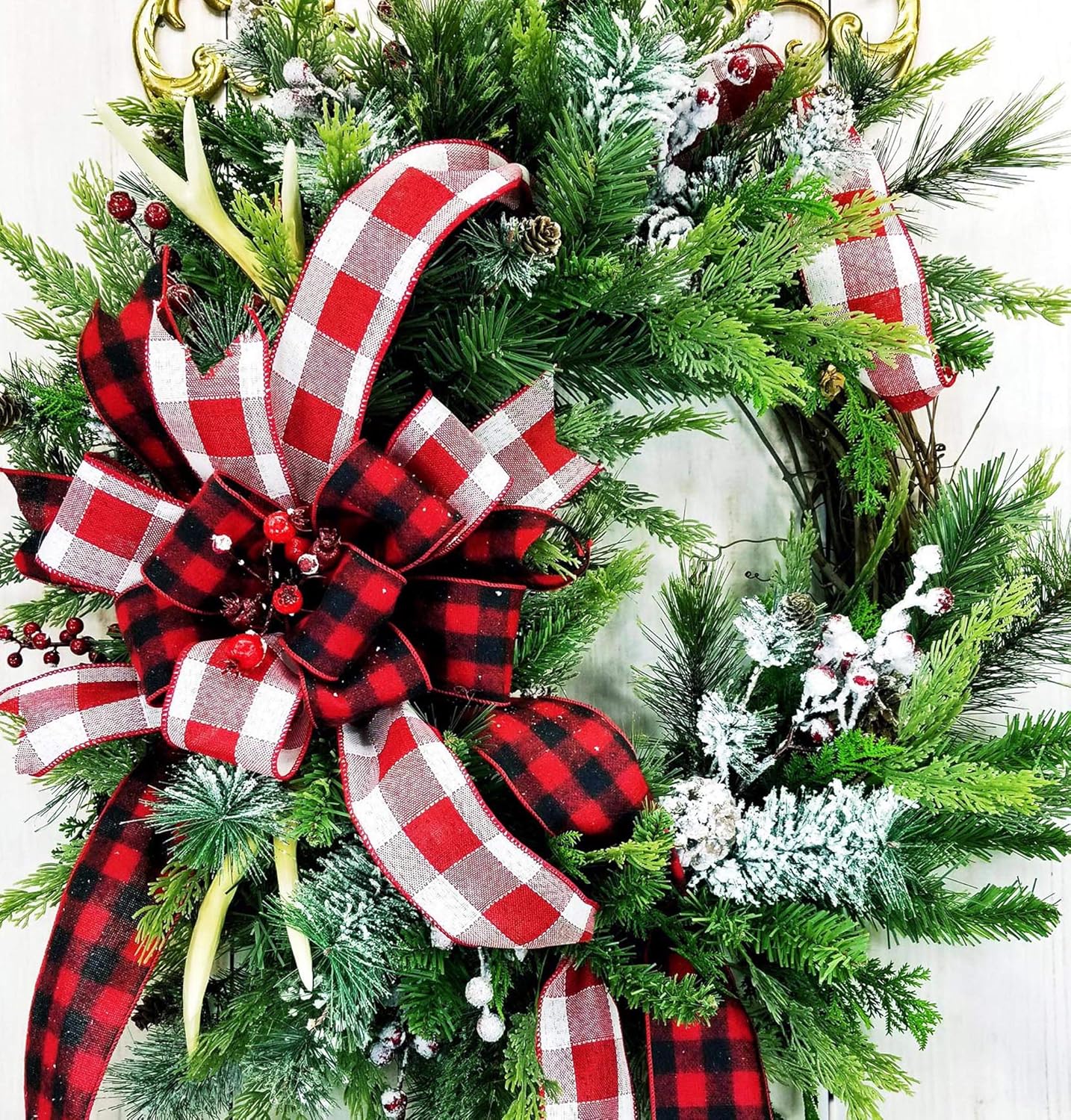 Antler Buffalo Check Plaid Christmas Wreath Ashleynichole Designs