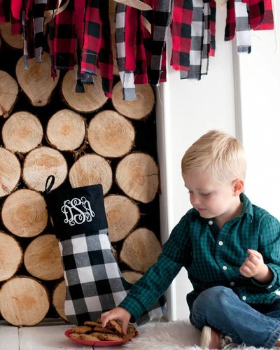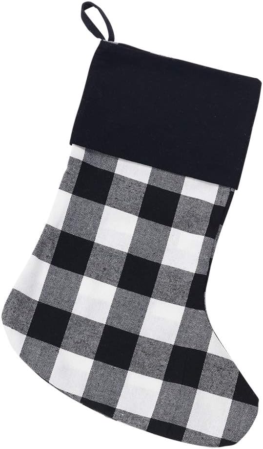 Buffalo Plaid Stocking Black White Checkered Christmas Holiday