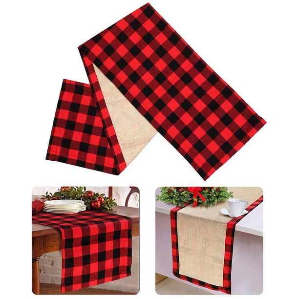 Christmas Table Runner Burlap Cotton Red Black Plaid Reversible Buffalo Check Table Runner For Christmas Holiday Birthday Party Table Home Decoration Wish