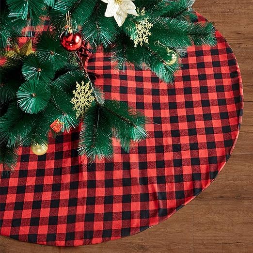 Aiduy Christmas Tree Skirt 48 Inch Large Buffalo Plaid Christmas