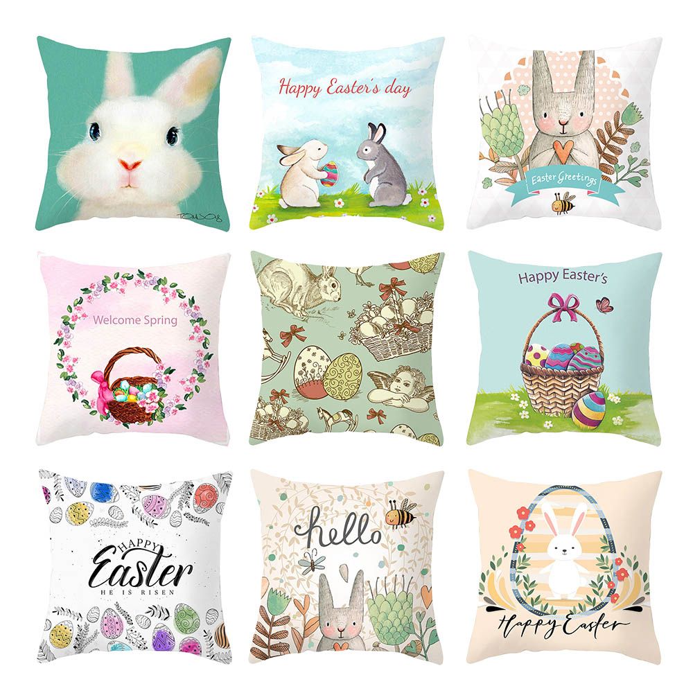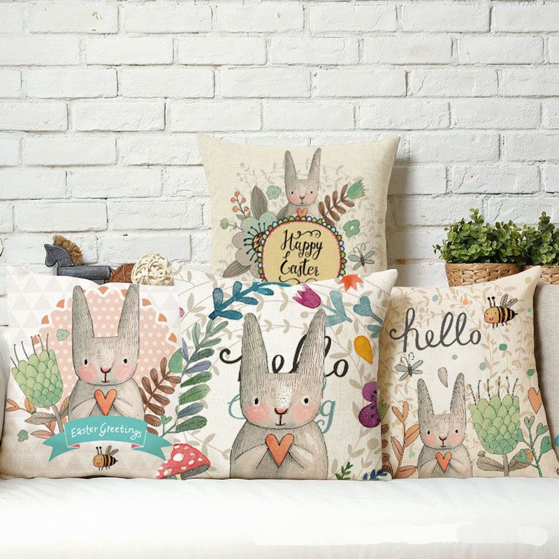 Hand Painting Easter Holiday Cushion Covers Happy Easter Bunny