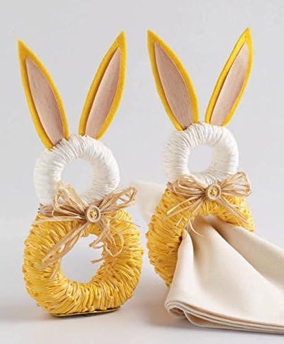 Amazon Com Design Imports Dii Yellow Raffia Bunny Napkin Rings