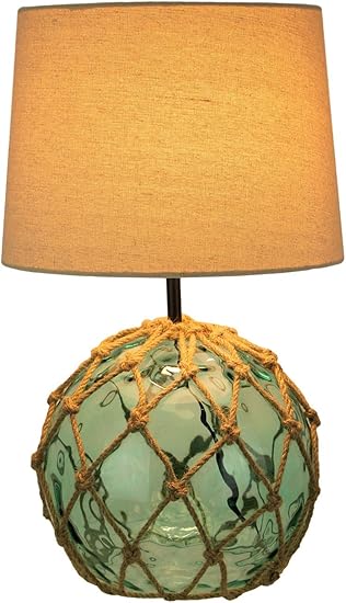 Green Rope And Glass Nautical Buoy Style Lamp With Linen Look