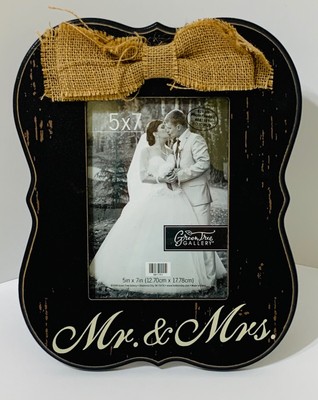 Mr Mrs Wooden Photo Frame Distressed W Burlap Bow 5 X 7 Inch