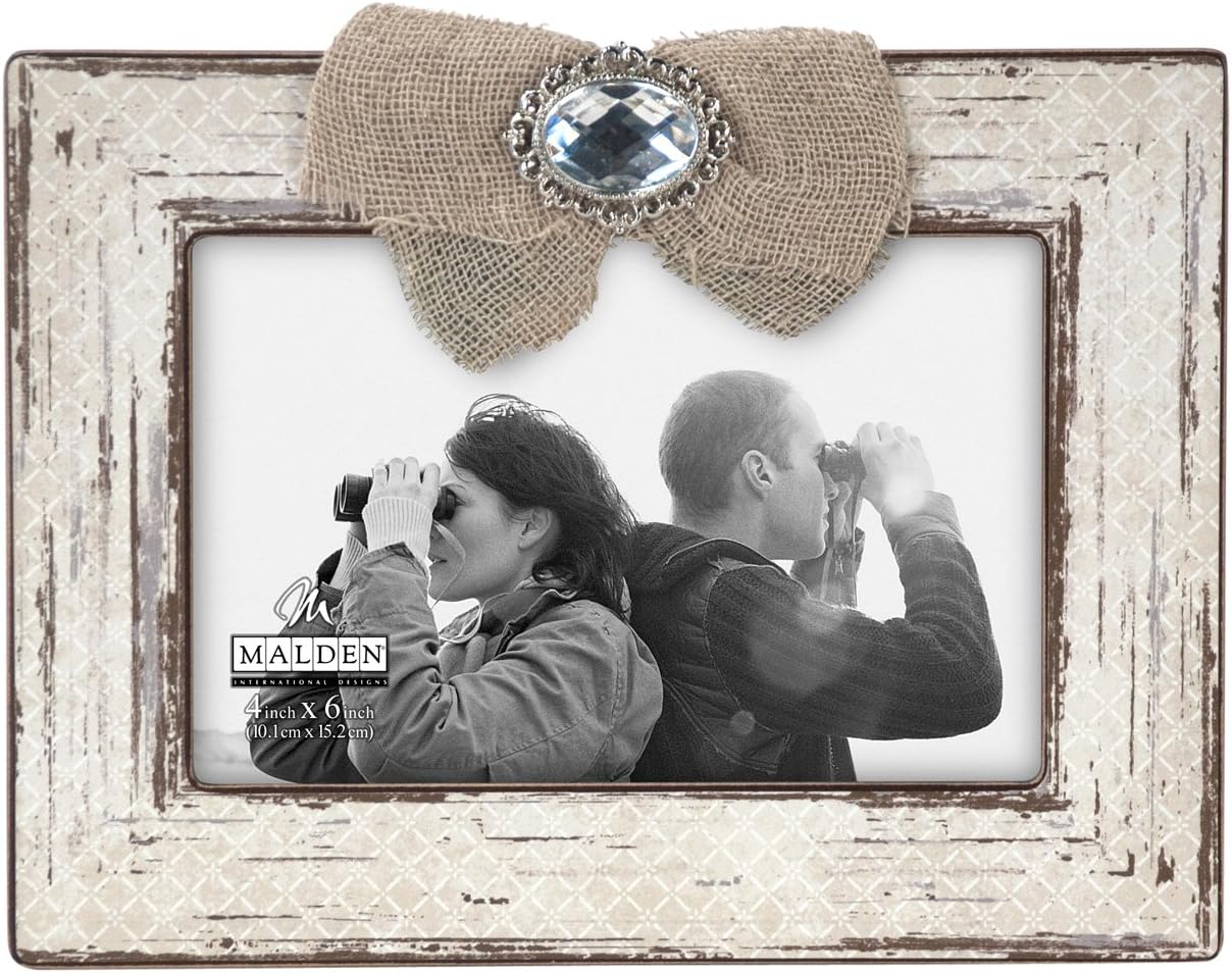 Malden Burlap Bow Attachment Wooden Picture Frame Holds 4 Inch X