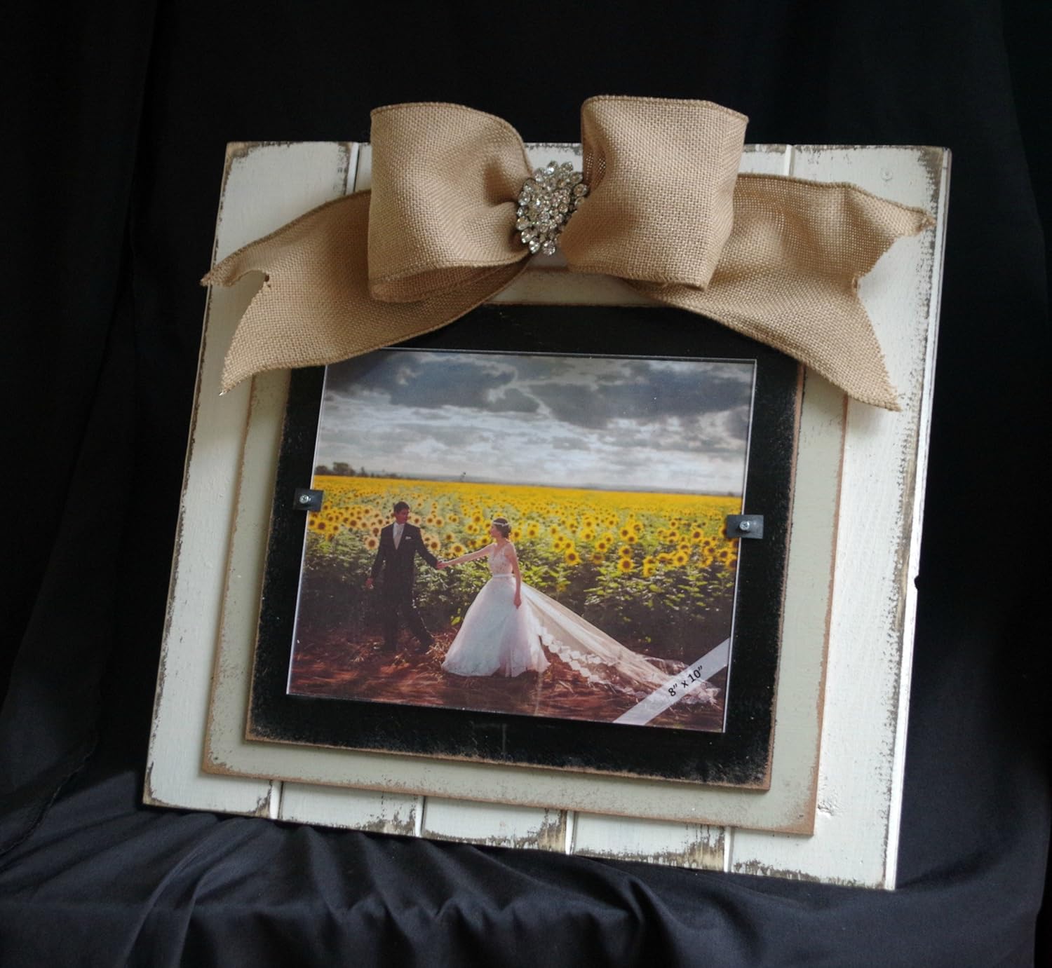 Wedding Photo Frame White Wood Burlap Bow Jewel Personalize Etsy