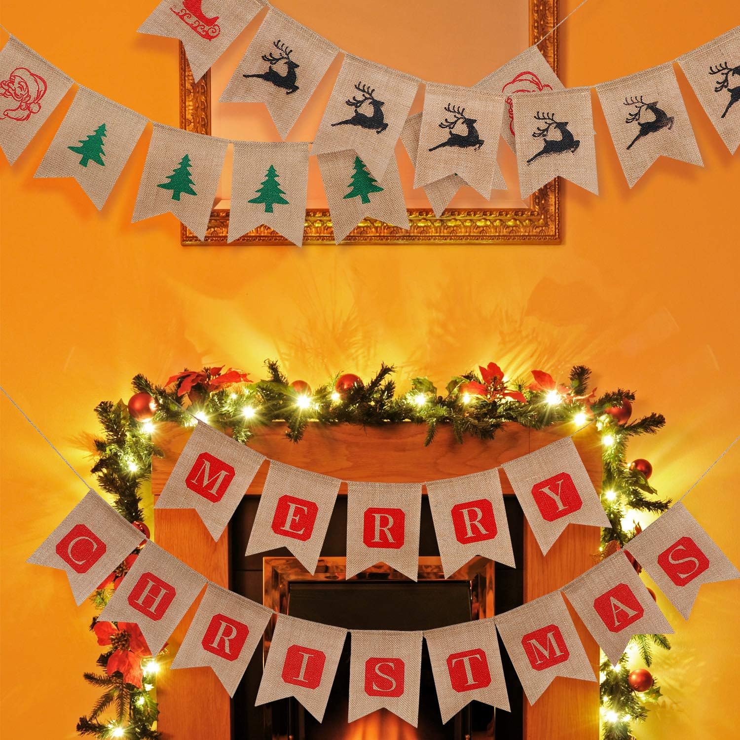 Amazon Com Boao 3 Packs Merry Christmas Banner Xmas Burlap