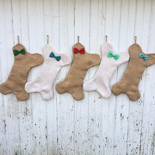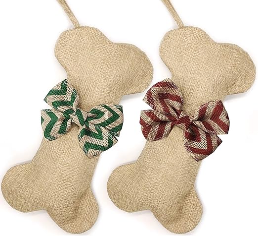 Amazon Com Burlap Dog Bone Christmas Stocking With Bow Bow Tie