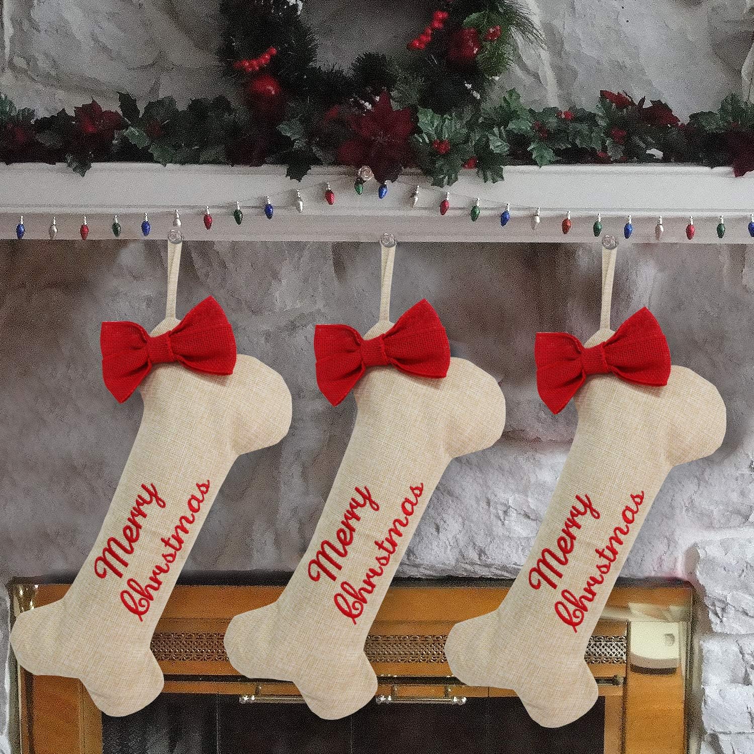 Weivan Dog Christmas Stockings Large Size Bone Shaped Puppy