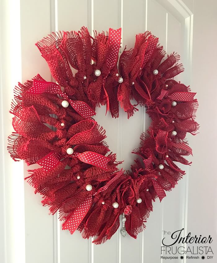 Diy Red Burlap Valentine Rag Wreath Interior Frugalista