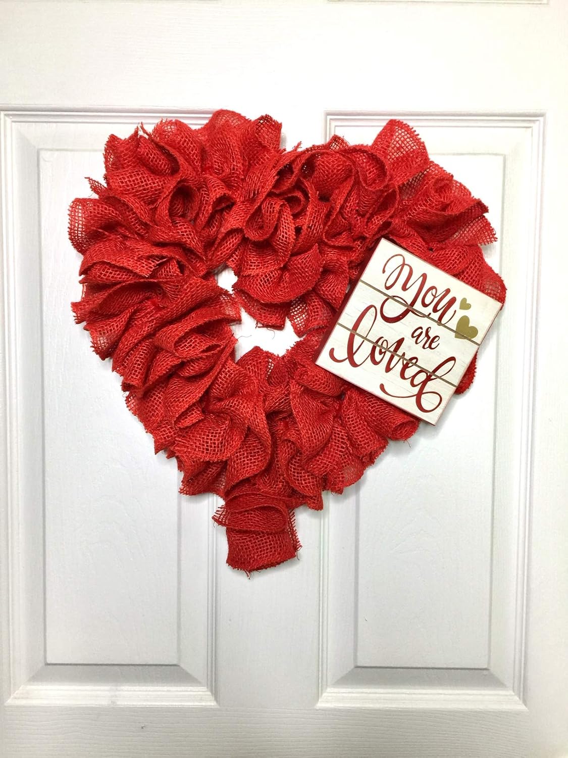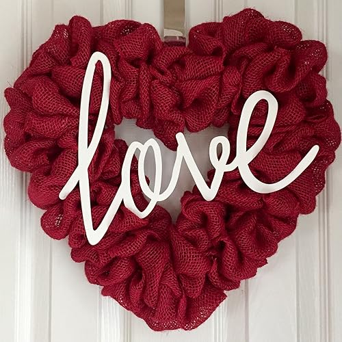 Front Door Valenties Day Burlap Heart Wreath Farmhouse Wreath
