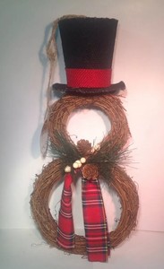 Brown Rattan Snowman Burlap Top Hat Scarf Christmas Greenery