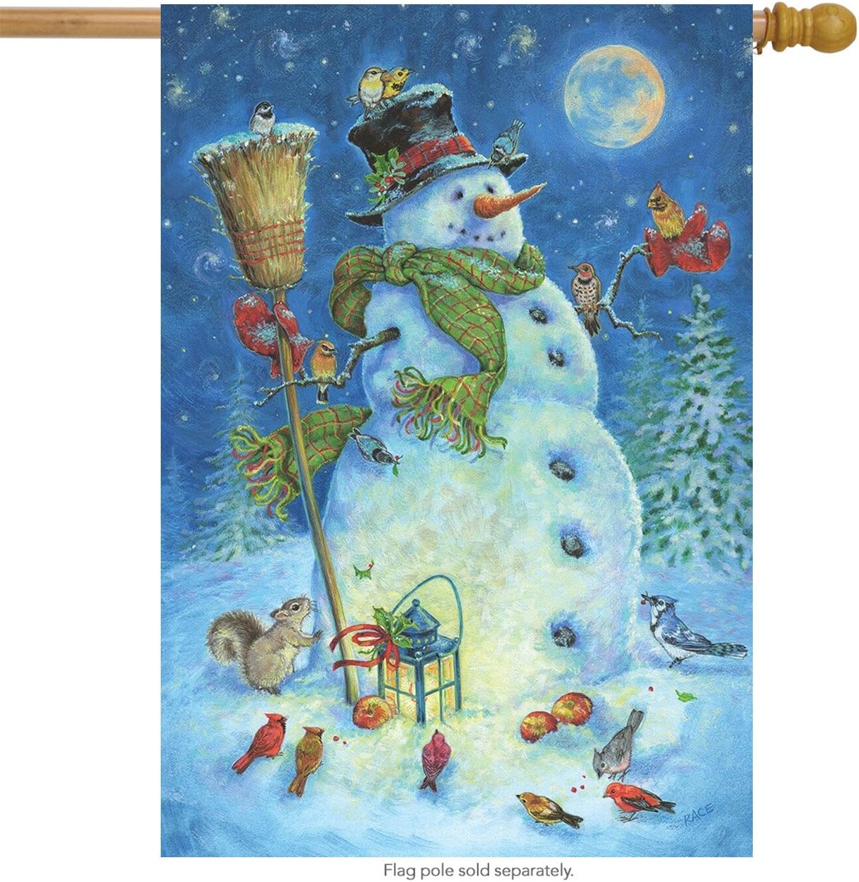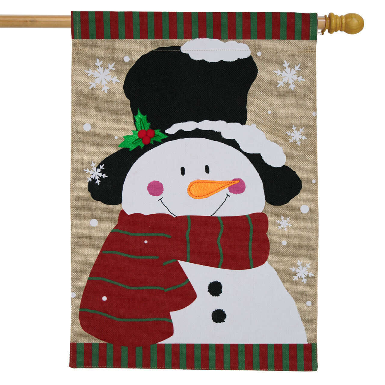 Winter Snowman Burlap House Flag Top Hat Scarf 28 X 40 Briarwood