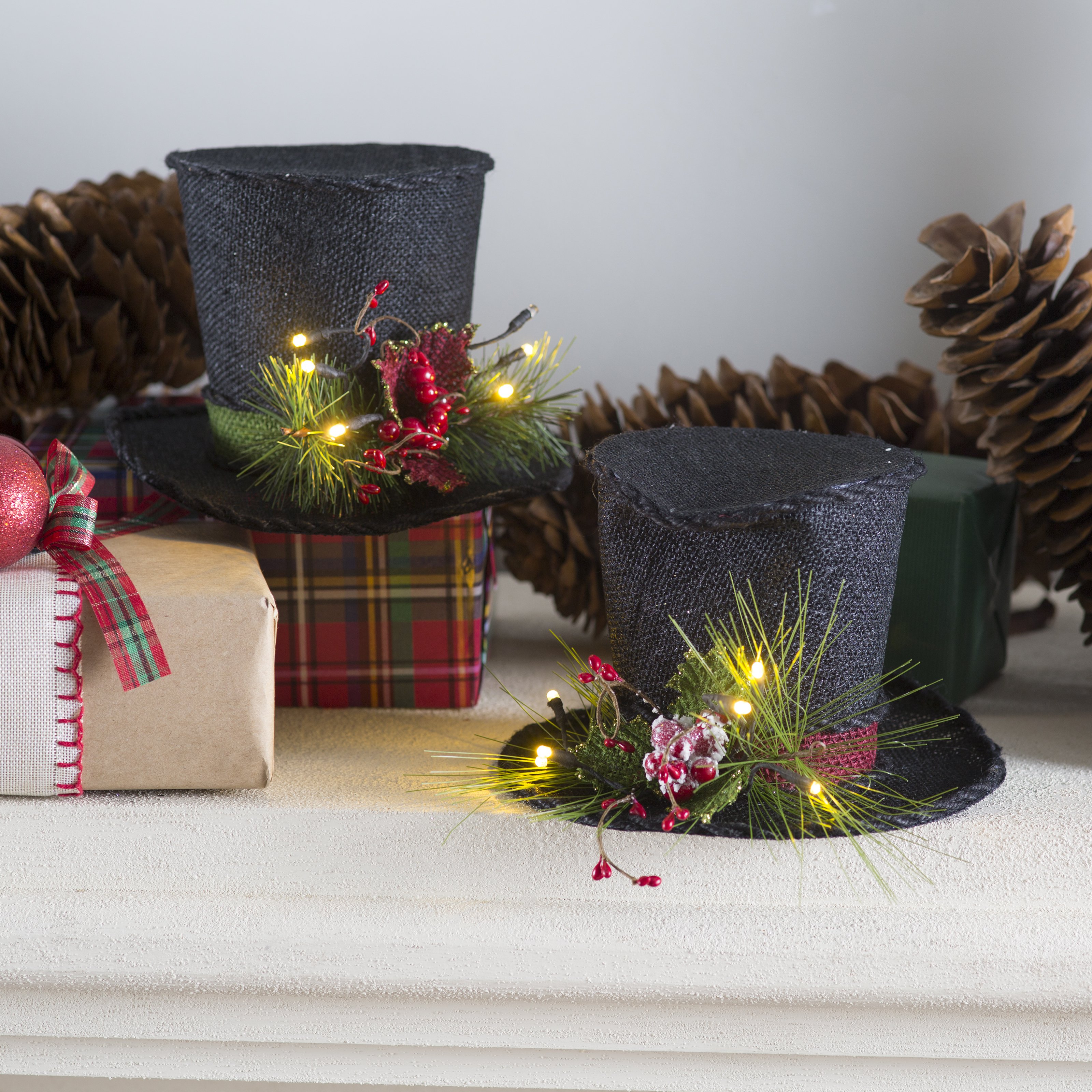 Gerson 9 In Lighted Black Burlap Holiday Top Hat Set Walmart