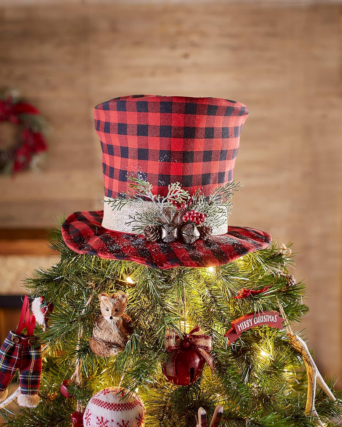 Top Hat Christmas Tree Topper Farmhouse Country Buffalo Plaid W